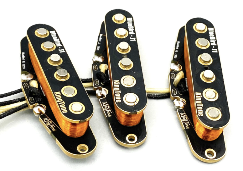 - KingTone BlueBird J1 – Vintage Tone with Modern Refinement. The BlueBird J1 set impressed us with its decade-proven design focusing on clarity and note bloom. They give you arguably the closest experience to a real Fifty’s Strat pickups: very low output, extremely clear, and woody, 3D clean tones. Yet they avoid ice-pick highs and handle overdrive pedals better than many vintage winds. If your style ranges from clean, soulful blues to cranked Texas rock, the BlueBird J1 provides an expansive dynamic palette – albeit at a boutique price.