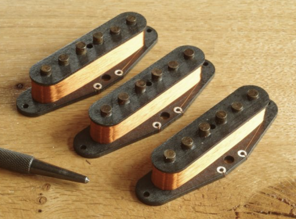 - Winding & Potting: Scatter-wound on custom machines; carefully tuned inductance to maximize clarity. Wax potted (custom wax blend) to control feedback while preserving openness. The pickups are calibrated as a set for even volume across positions.