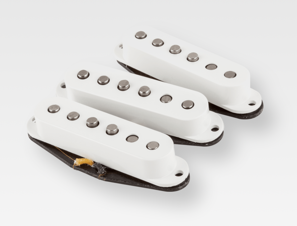 The bridge is significantly hotter wound to give more drive, while the neck and middle remain in vintage output range. The result is a set that produces warm, smoky Strat tones with enhanced midrange – perfect for pushing a tube amp into bluesy overdrive.